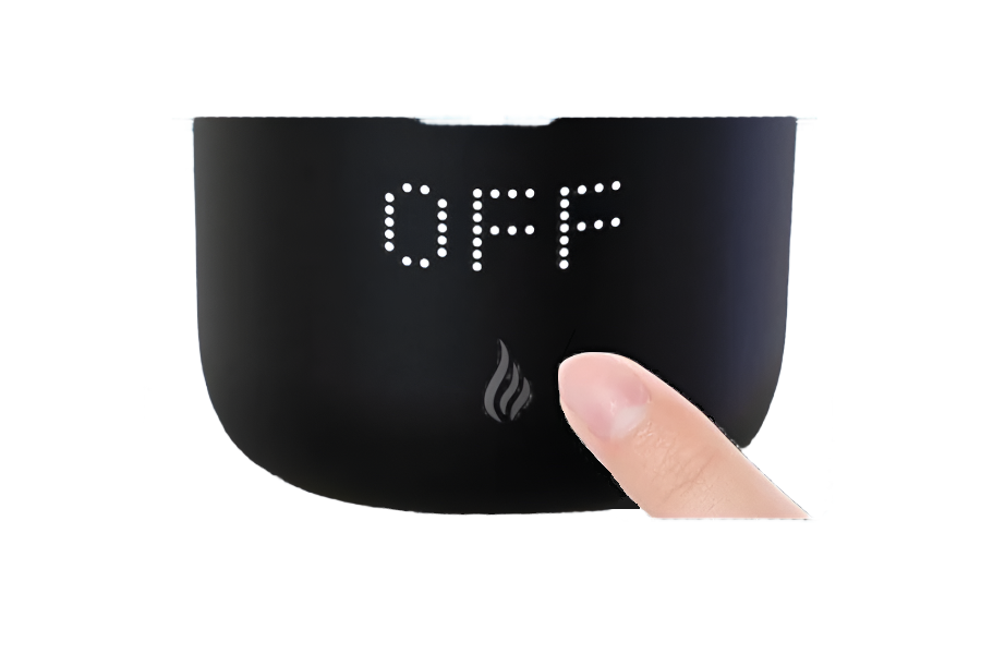 - When done, long press the flame emblem to turn off the heating which switches the mug back into sleep mode